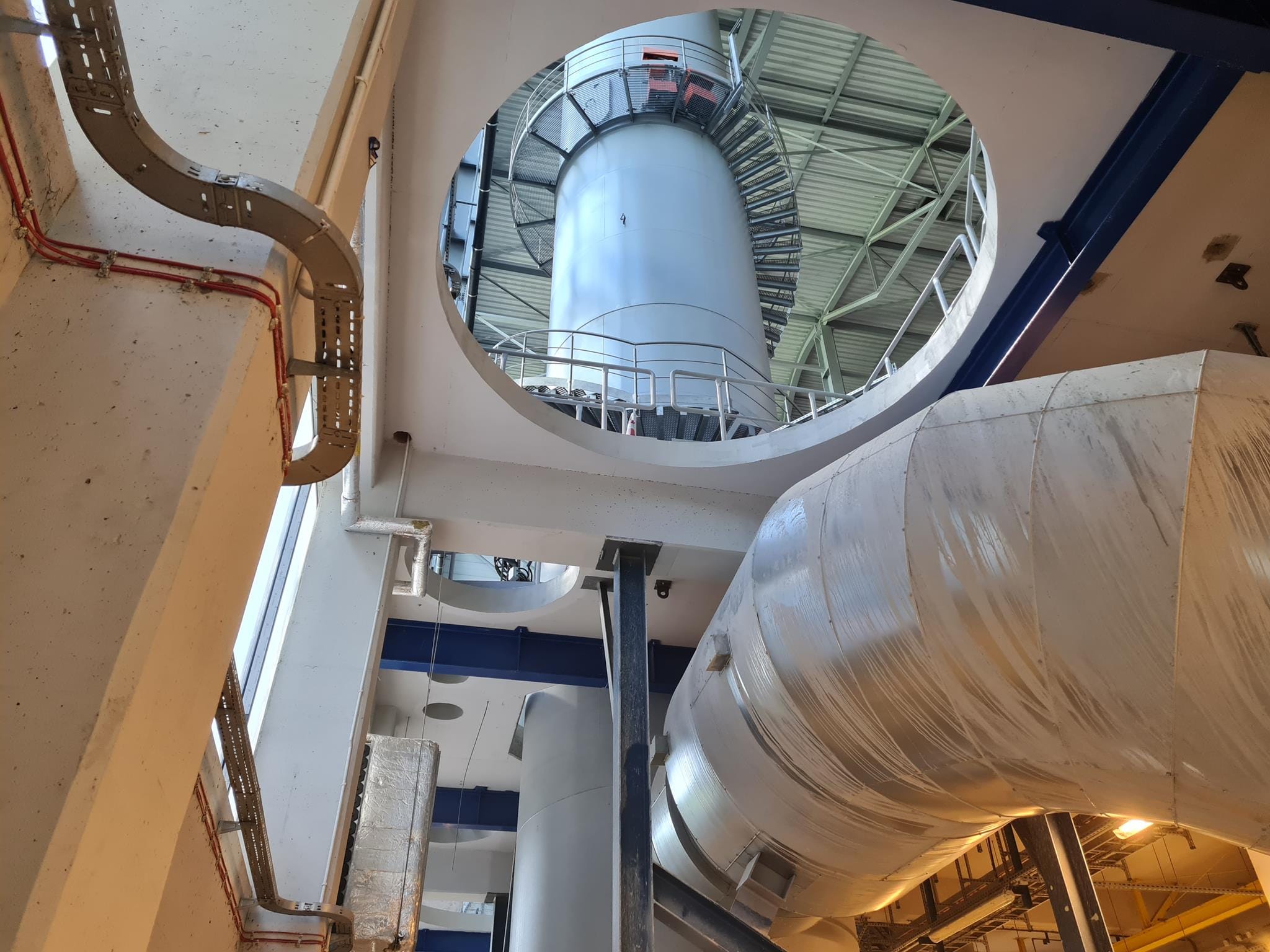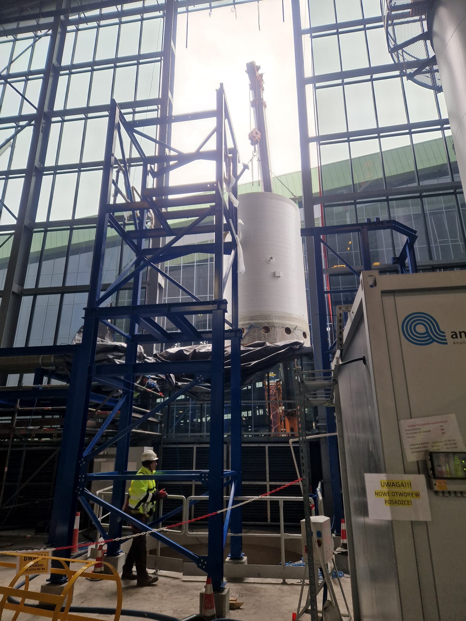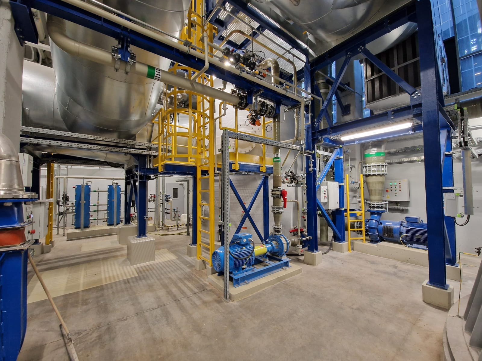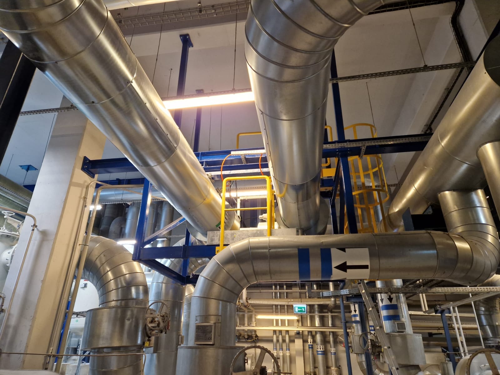Zrealizowano prace: – wzmocnienia stropów żelbetowych – otworowanie stropów metodą cięć i odwiertów – montaże konstrukcji stalowych wsporczych i pomocniczych – montaże urządzeń wielkogabarytowych takich jak: wymienniki ciepła, zbiorniki, silniki z wentylatorami, skrubery, kanały spalin – montaże rurociągów instalacji UOC w przedziale średnic DN15-DN600 oraz kanały spalin ze stali nierdzewnej DN1600, łączna długość rurociągów około 8 tys mb – demontaże ciężkie kanałów spalin oraz wentylatorów i silników – wykonanie rurociągu ciepłowniczego stalowego pod nadzorem UDT